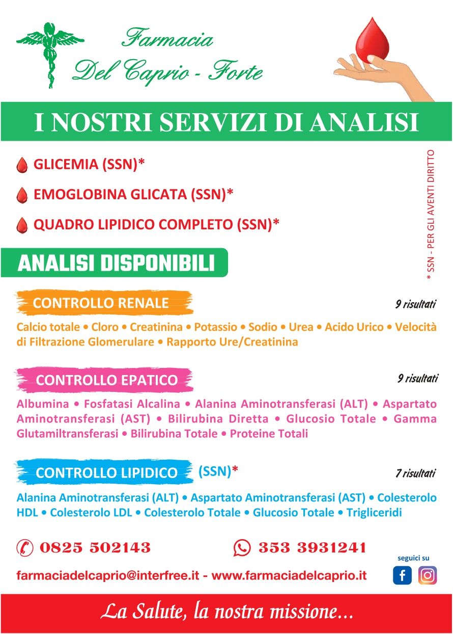 - la rilevazione dei livelli di glicemia, colesterolo e trigliceridi;